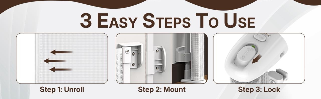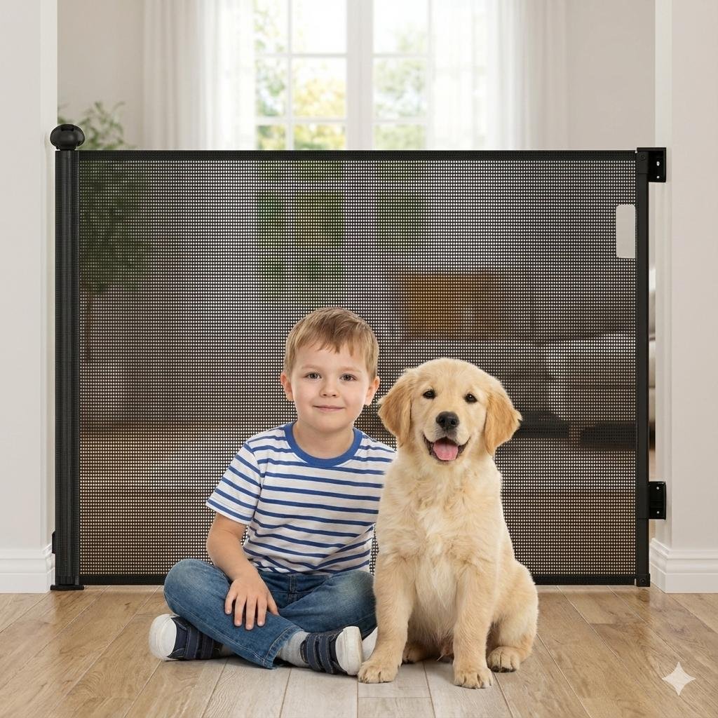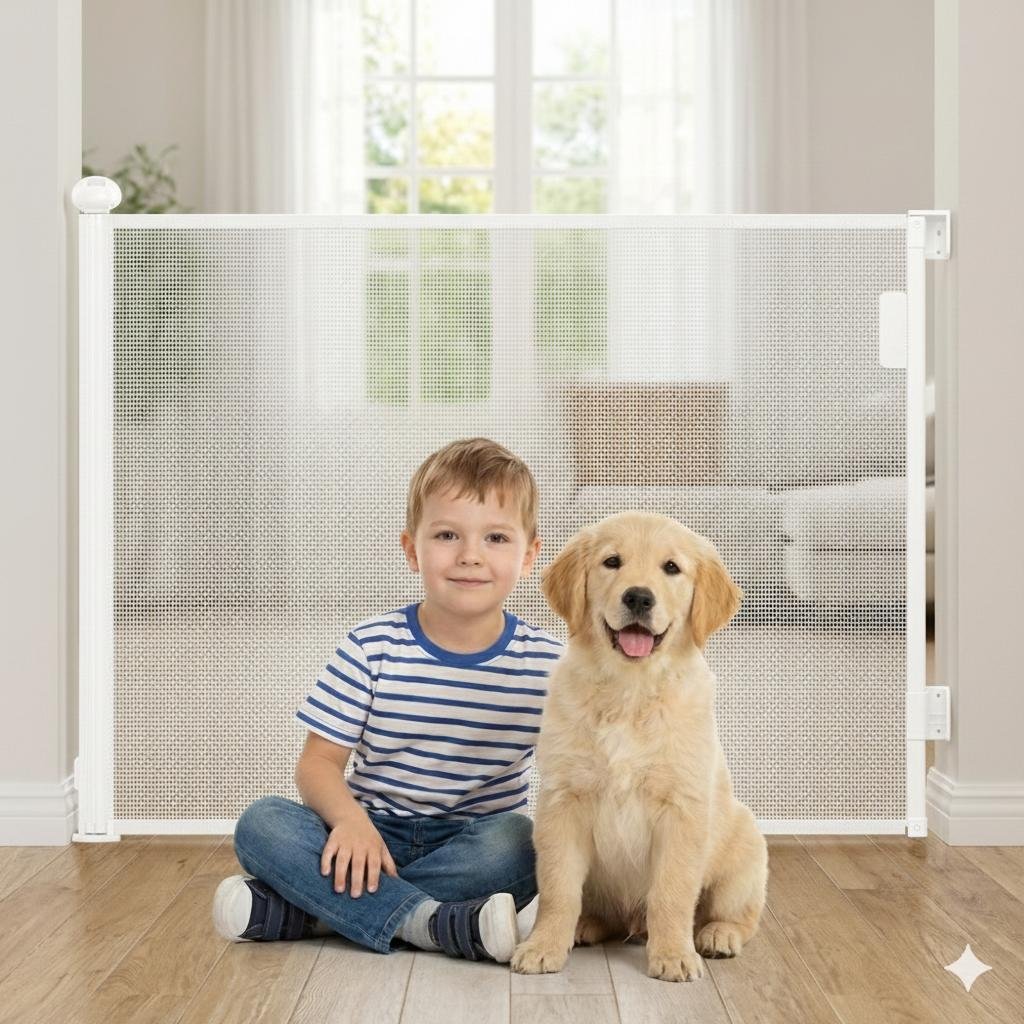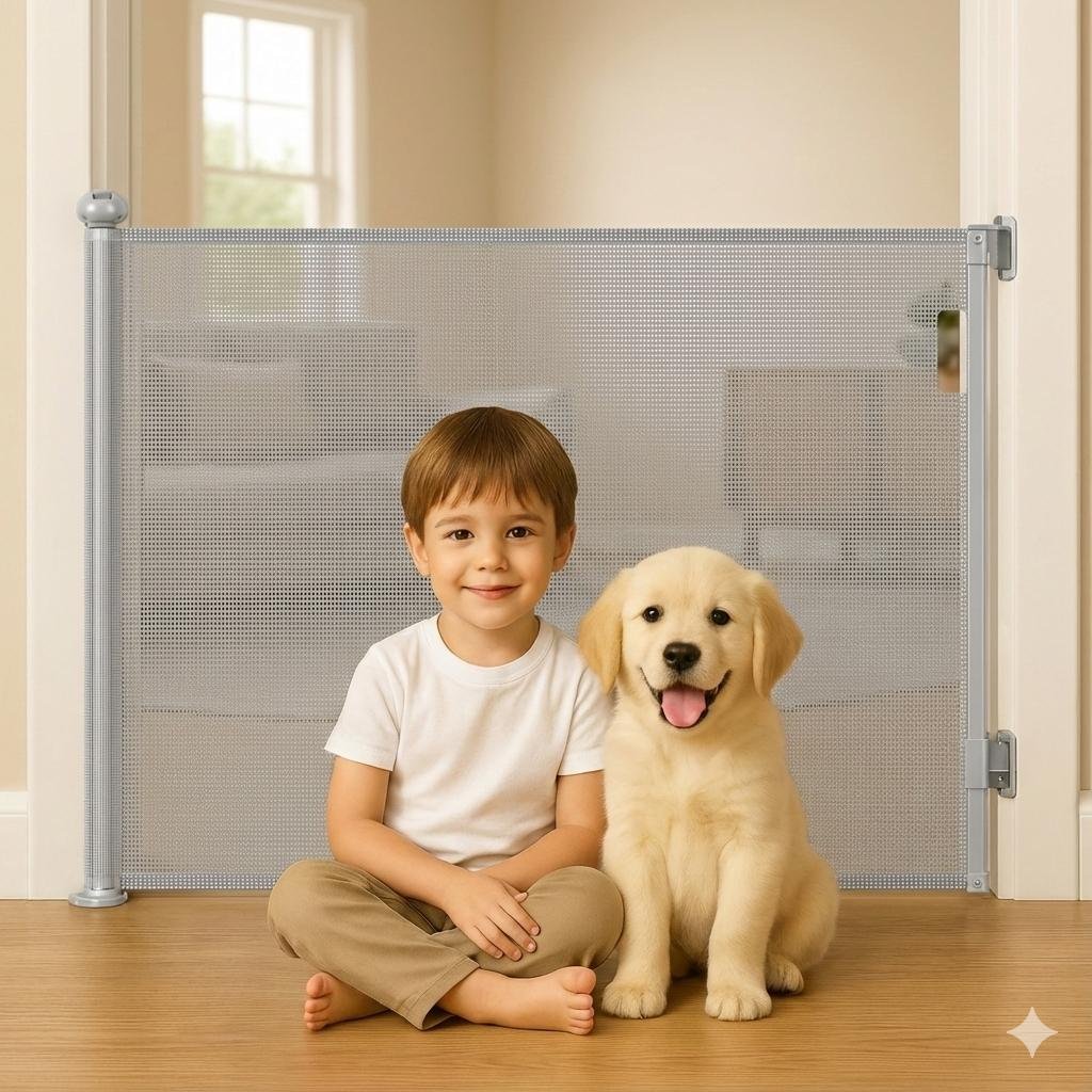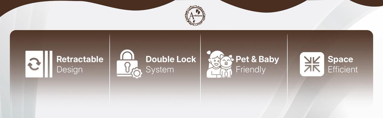Keep your little ones safe with the Arshanayas Retractable Baby Safety Gate, featuring a dual-action safety lock, durable breathable mesh, and an adjustable width of up to 55 inches. Designed for modern homes, stairs, and doorways.